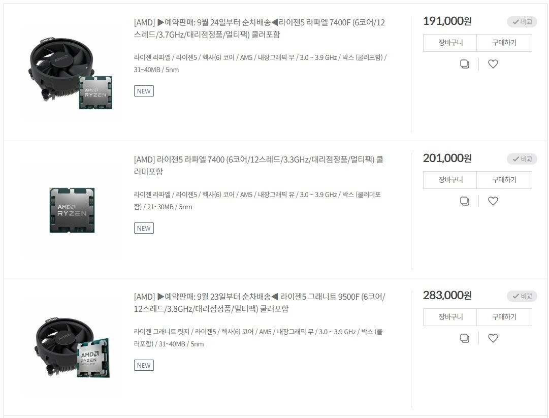 Theo @harukaze5719, dòng Ryzen 7000 hiện đã có thêm hai CPU mới, được phát hiện trên Danawa , một nền tảng so sánh giá của Hàn Quốc. Đó là Ryzen 5 7400 và Ryzen 5 7400F dựa trên kiến trúc Zen 4. Bên cạnh đó, CPU Ryzen 5 9500F dựa trên kiến trúc Zen 5 mới ra mắt gần đây cũng được liệt kê trên nền tảng này và hiện đã có sẵn để bán lẻ trên toàn thế giới.